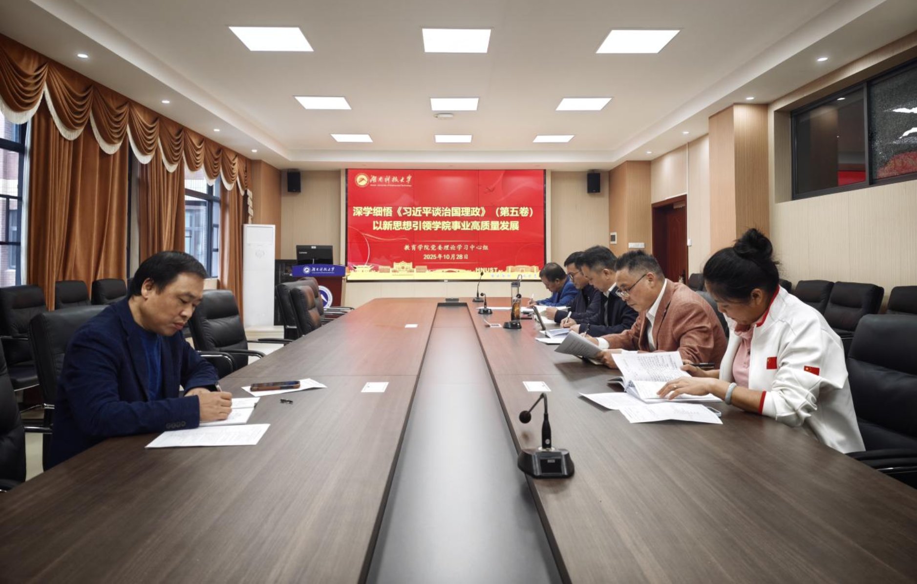 为深入学习贯彻《习近平谈治国理政》(第五卷)精神,深刻领悟党的创新理论核心要义,切实统一思想共识、汇聚学院发展合力,以新思想引领学院事业高质量发展,必赢76net线路官网党委理论学习中心组于10月28日在敏行楼A333举行2025年第十次集体学习。院党委书记傅早霞主持学习,院党委委员、专职组织员参加学习。
