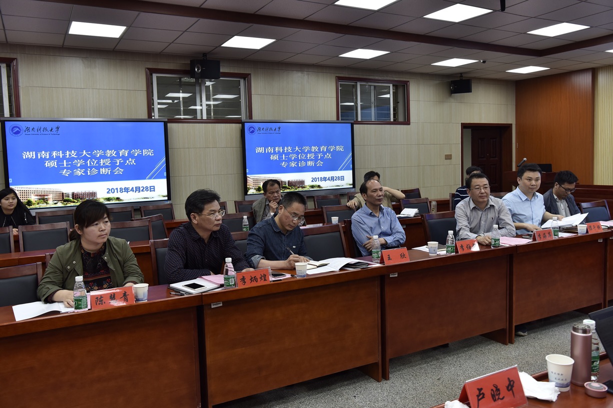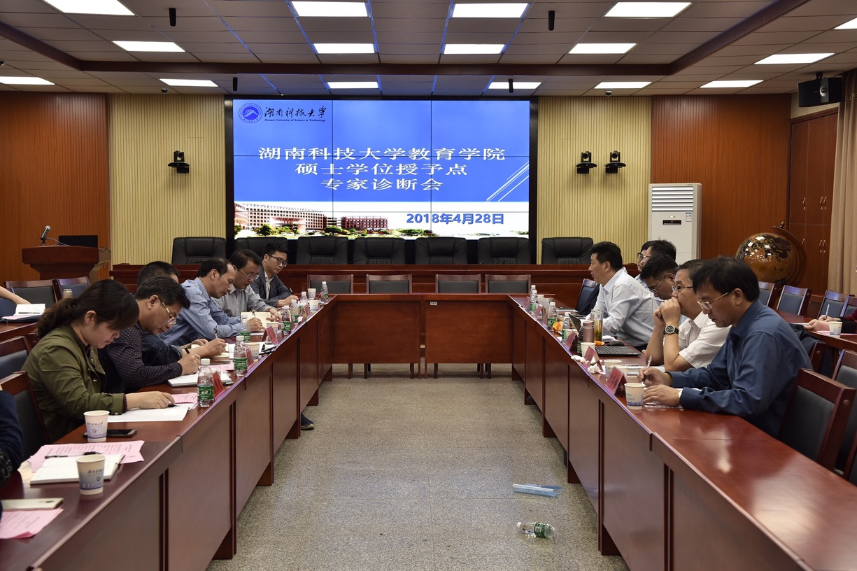2018年4月28日下午,必赢76net线路官网硕士学位授权点专家诊断会在八教308学术报告厅召开。西南大学副校长、国务院学科评议组成员靳玉乐,全国教育专业学位教育指导委员会秘书长、“长江学者”特聘教授、北京师范大学教育学部张斌贤,全国教育学专业教育指导委员会委员、国家教学名师、首都师范大学特聘教授石鸥,全国教育专业学位教育指导委员会委员、“长江学者”特聘教授、华南师范大学教育科学学院院长卢晓中,全国教育专业学位教育指导委员会委员、华中师范大学必赢76net线路官网涂艳国,全国教育专业学位教育指导委员会委员、湖南师范大学教育科学学院副院长刘铁芳,湘潭市人民政府主任督学、中学特级教师郭务强及必赢76net线路官网校长李伯超、必赢76net线路官网研究生院副院长王欣出席。会议由必赢76net线路官网党委书记李炳煌主持。