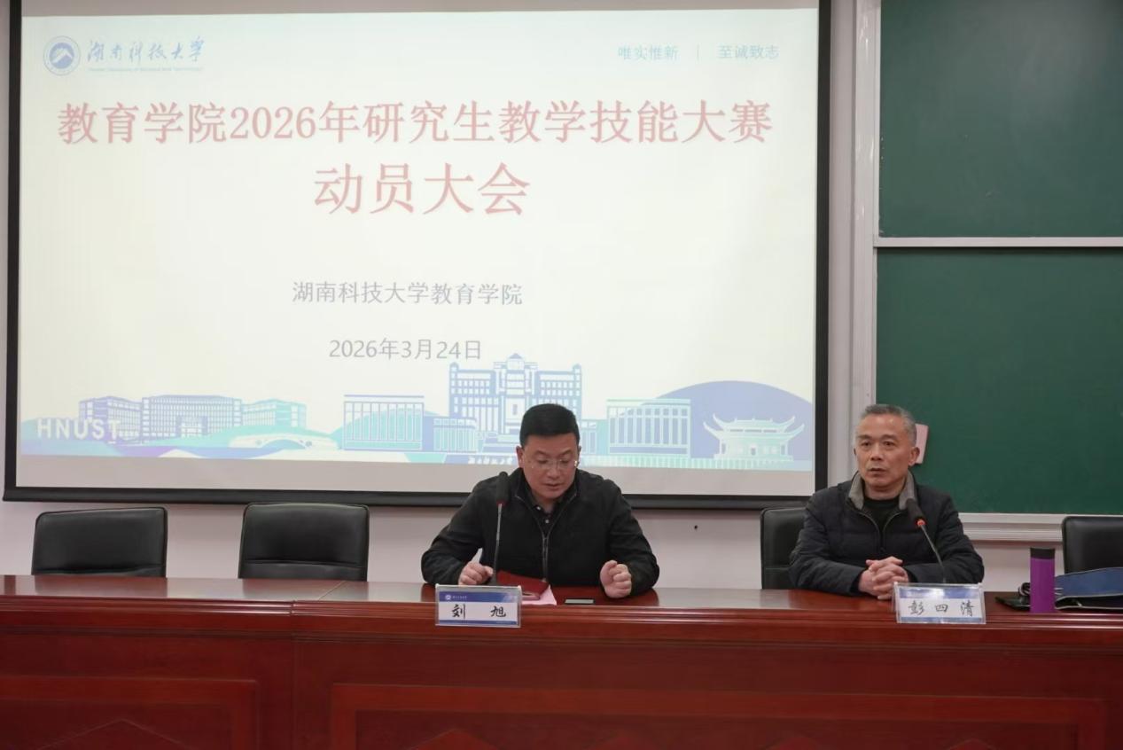 3月24日,必赢76net线路官网2026年研究生教学技能大赛动员会在雨湖校区第二教学楼102教室顺利召开。本次动员会特邀湘潭市第二中学副校长彭四清担任主讲嘉宾,必赢76net线路官网副院长刘旭主持会议,学院全体研究生参会。