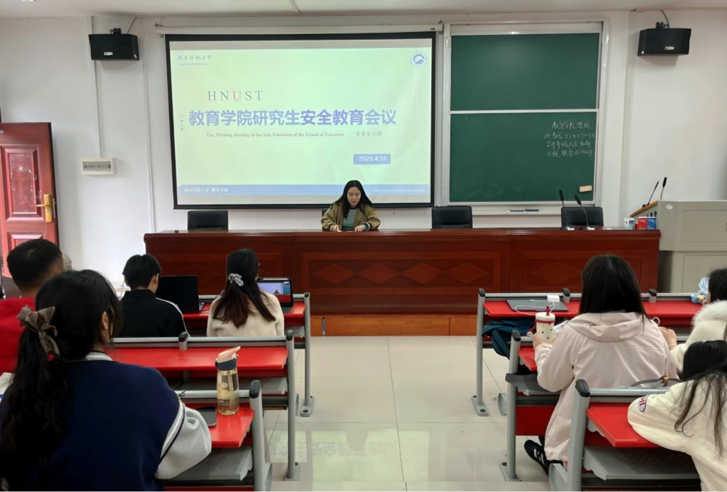 会上,研究生辅导员谢斯琪围绕交通安全、防火安全、网络安全、食品安全等方面,对研究生开展全面细致的安全教育。她强调,研究生作为高层次人才,既是校园安全的参与者,更是自身安全的第一责任人。