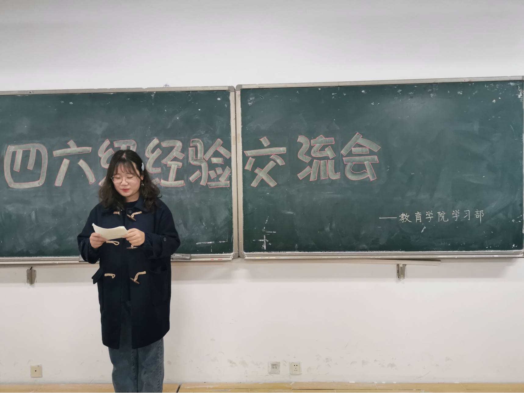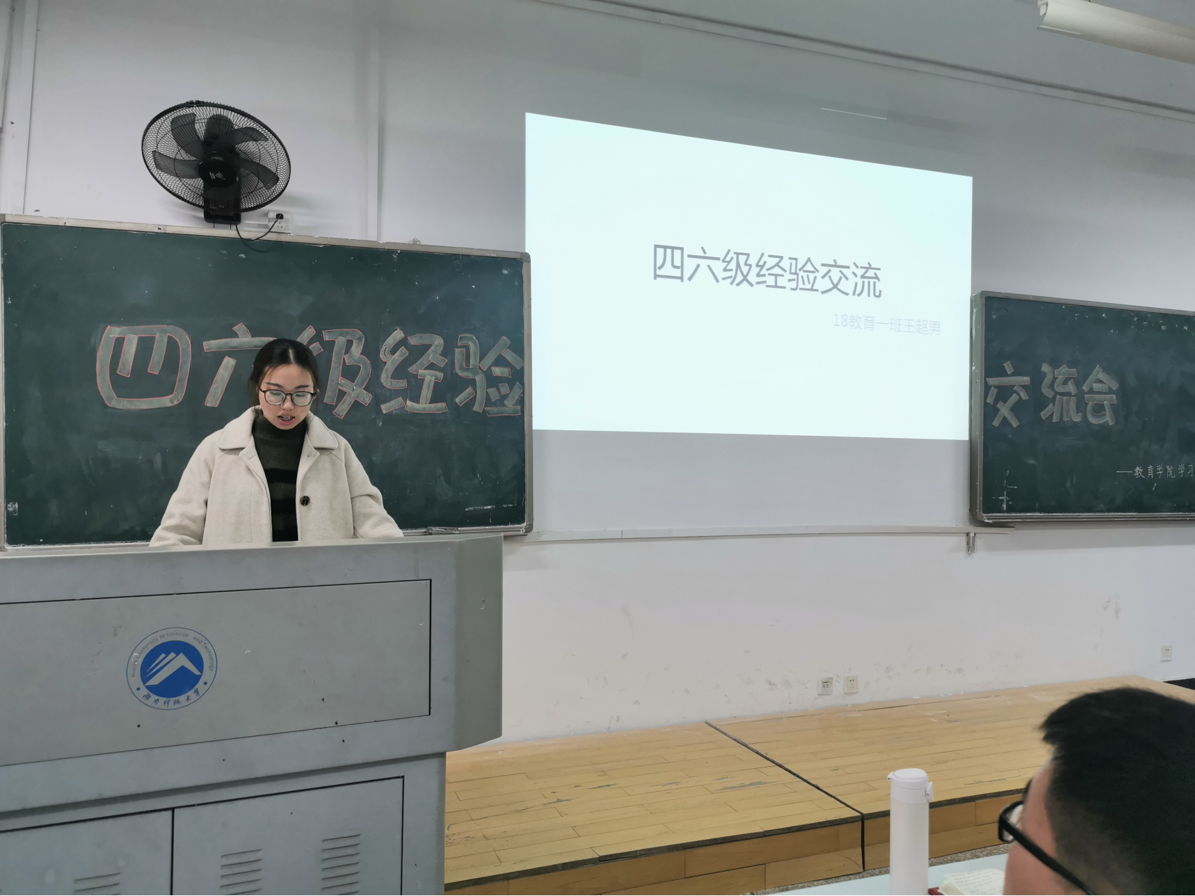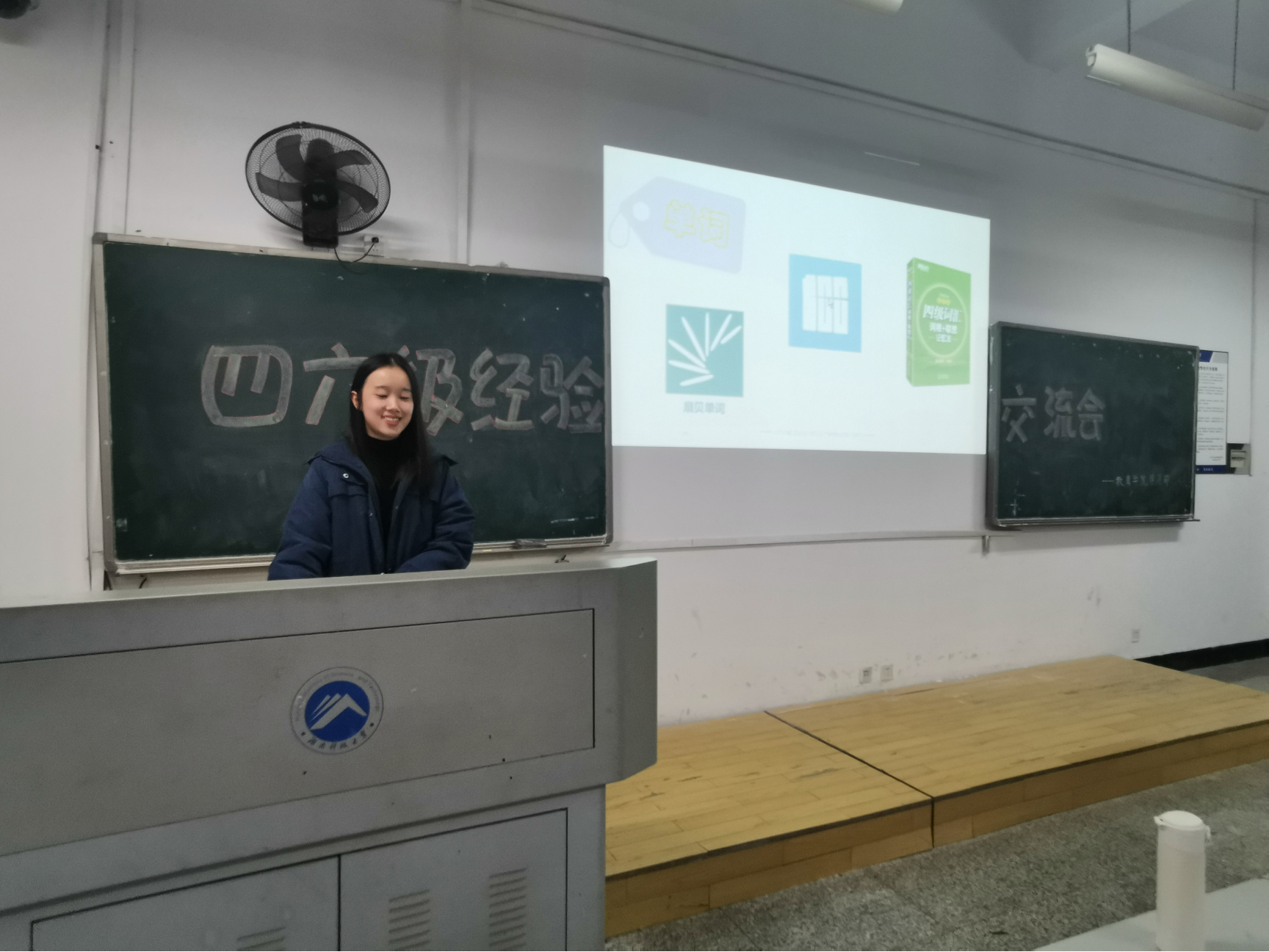 此次四级交流会的举办,主要是针对同学们对四六级的疑惑之处,从复习应考的心态、复习范围、应试技巧以及注意事项等方面对大家进行集体辅导。同时学习部也将竭尽全力为学院营造一个学习英语的优良氛围,希望在即将到来的英语四六级考试中助同学们一臂之力。会议开始,主持人介绍本次参会嘉宾及会议流程,之后,赵朋林首先向大家分享了自己关于四级考试的经验,仔细讲解了四级的各类题型,尤其是英语阅读题的做法,引起同学们的积极反响。他提出复习时一定要把握时间,提高效率,不断的积累词汇,只有如此,才能使自己的英语水平得到稳定提高。接着,王超男也向同学们提出了十分有效建议,并且着重讲了四级听力的技巧,比如,在听力播放前要画出问题选项,用横线标出依据,并做出预判,也要注重转折词之后和朗读者重读的内容,这一建议让许多对听力无从下手的同学恍然大悟。之后,周希芸对同学们的四级作文进行了指导,提醒同学们,写作时要多用高级语句,有新意,字迹一定要工整,平时多积累好句子,并向同学们推荐了公众号China daily ,赢得了同学们的热烈掌声。最后,何梦萍给出了她关于翻译的经验,向同学们讲解翻译的重点是词汇和语法,在考试时时间一定要多留一点,给自己思考的余地。经过各位学长学姐的分享,同学们脸上都流露出了愉快的笑容,会场上掌声不断。会议尾声,主持人做总结发言,再次强调了各位学长学姐都提到的最重要的也是最基础的单词,要按时打卡,多加背诵。