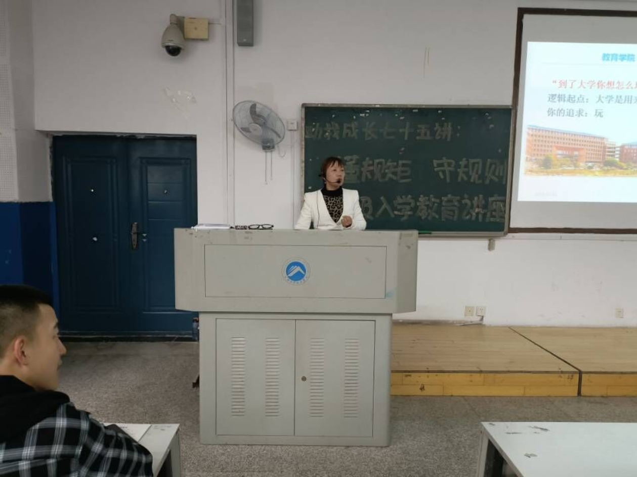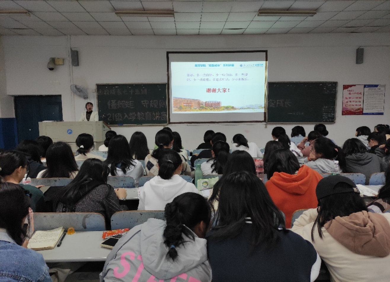 为使2021级新生更好地适应大学生的身份和大学生活,进一步明确校纪校规,10月12日下午4:00,“助我成长”系列讲座第七十五讲——懂规矩,守规则,促成长在第八教学楼1-3教室顺利进行。本次讲座由必赢76net线路官网辅导员尹琼芳主讲,全体21级新生参与。