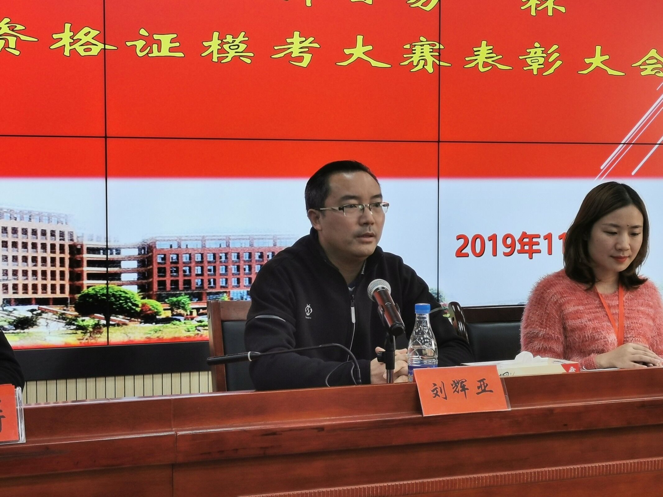 大会伊始,刘斌公布本次大赛的成绩结果并进行分析,指出“两极分化”、“小学组成绩普遍高于中学组”、“综合素质得分明显高于教学知识能力”等问题。他希望参加本次大赛的同学可以根据成绩结果认真进行总结反思,全力准备接下来的面试。接着,刘文静介绍了本次大赛的奖项设置和具体情况,李涛宣读了此次大赛的获奖名单,嘉宾们为获奖同学颁奖并一起合影留念。最后,刘辉亚对此次大会进行总结。他首先对所有获奖的同学表示热烈的祝贺,对“新百易”教育公司对比赛的大力支持表示真诚的感谢。刘辉亚指出,同学们要通过模考大赛这种手段,认清自我问题并调整自我状态,争取在教师资格证的面试和笔试中一次性通过。当前就业形势严峻,他希望同学们珍惜每一次指导机会,把握有限的考试时机,积极应对就业难题。同时,他表示学院的工作人员将会对同学们的需求提供针对性的服务,帮助同学们解决学习上的问题,”新百易“教育公司也将免费提供课程进行相对应的辅导。他期待在学院和同学们共同努力下,每一位同学都能顺利通过考试并拿到教师资格证。