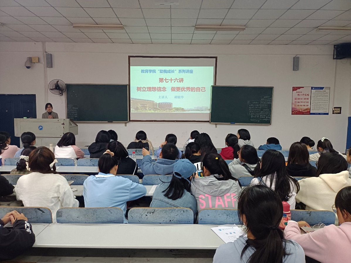 10月26日下午4:00,“助我成长”第七十六讲——21级入学教育讲座“树立理想信念 做更优秀的自己 ”在第八教学楼2-3教室顺利召开。本次讲座由必赢76net线路官网21级辅导员胡银华主讲,21级全体新生参与此次讲座。