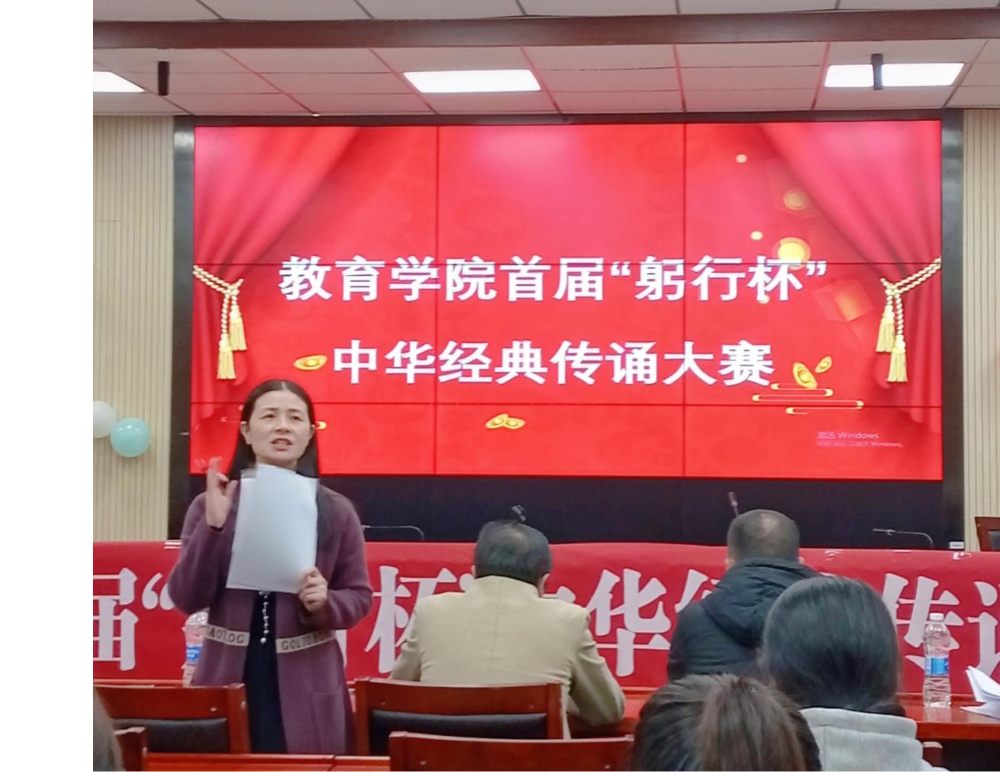 为进一步丰富校园文化生活,营造浓厚的书香校园氛围,弘扬中华优秀文化,激发学生的读书和诵读经典热情,更好地促进必赢官网学生人文素养培养,必赢76net线路官网举行了首届“躬行杯”中华经典传诵大赛。本次大赛由小学教育系和院团委联合举办,由黄青老师担任总指导,由科技活动部进行策划组织,经过初赛选拔,共有13个小组入围决赛环节。决赛于10月22日晚在第八教学楼308室进行,学院刘辉亚副书记、小教系夏永庚主任、冯青来老师、黄青老师以及特别邀请的教务处夏莉副处长出席担任评委。