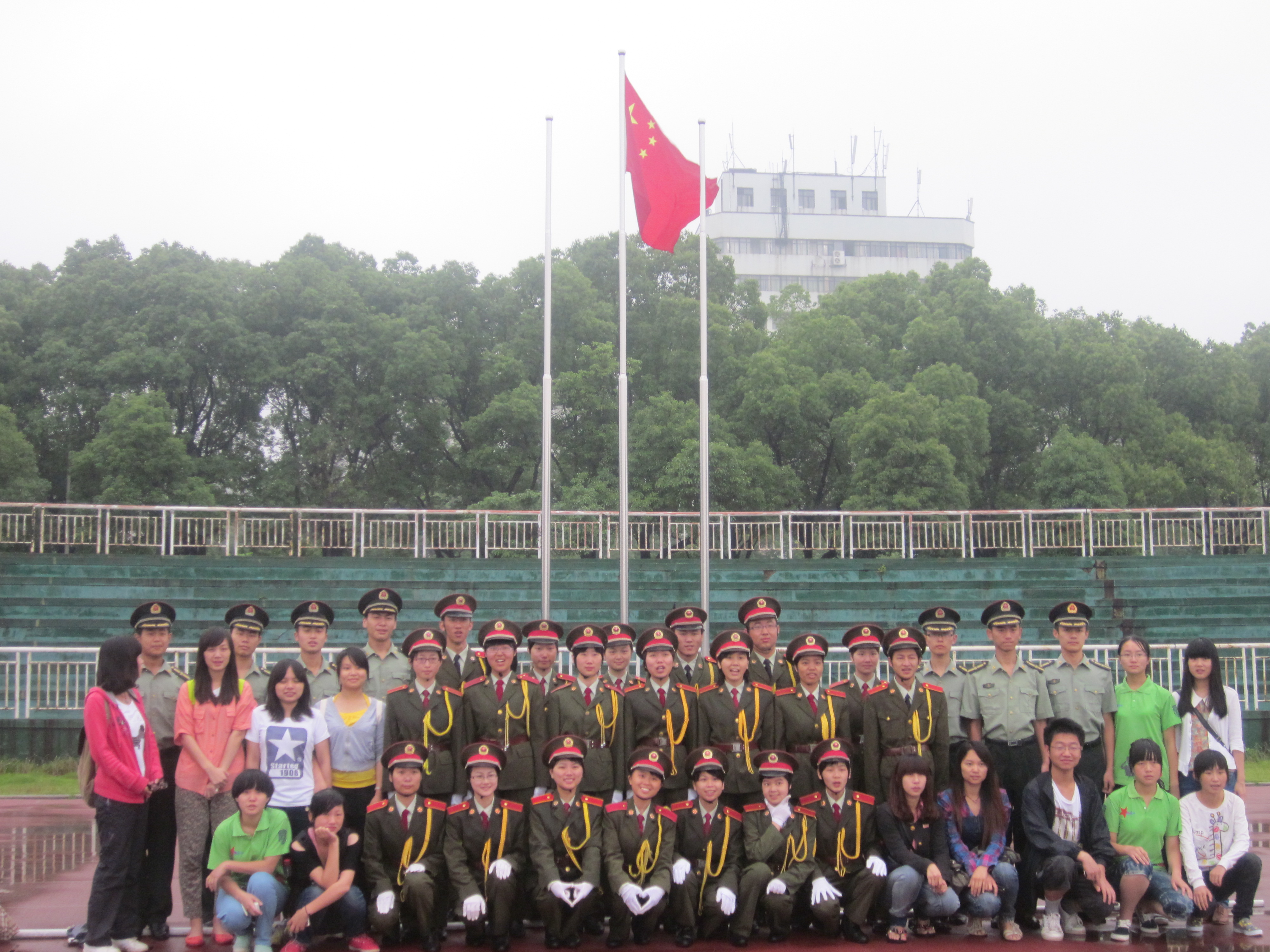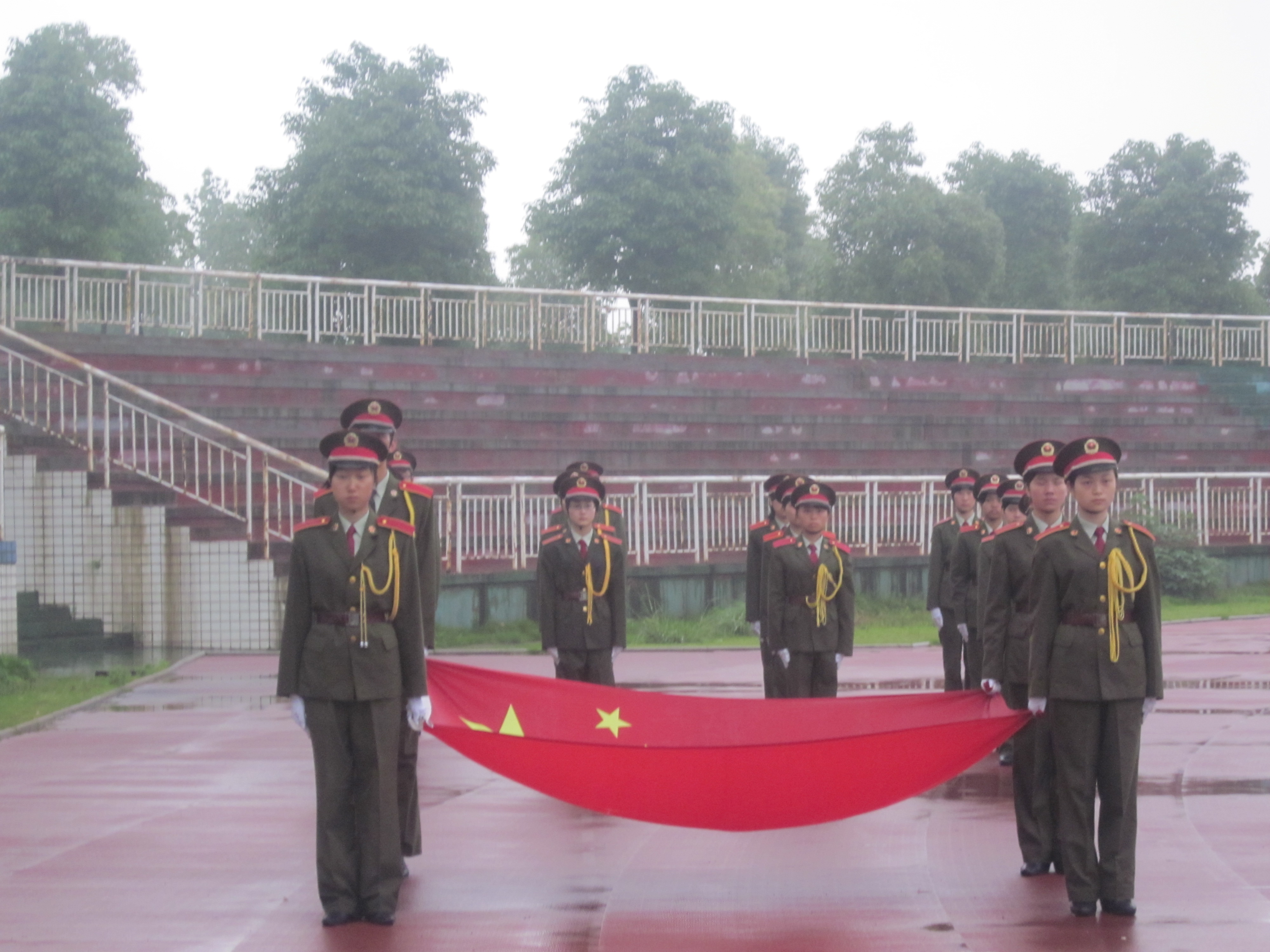 夏雨淅淅沥沥,步伐依旧如健。6月4日早6点,一群身着整洁军装的战士不顾风雨,依然早早来到体育场开始升旗前的热身训练,他们为了能够升好这次国旗,已经经过了一周严格的训练,他们就是全校挑选出来唯一以班级形式进入国旗班升旗的班级,他们就是必赢76net线路官网的09小学教育专业2班的同学们。