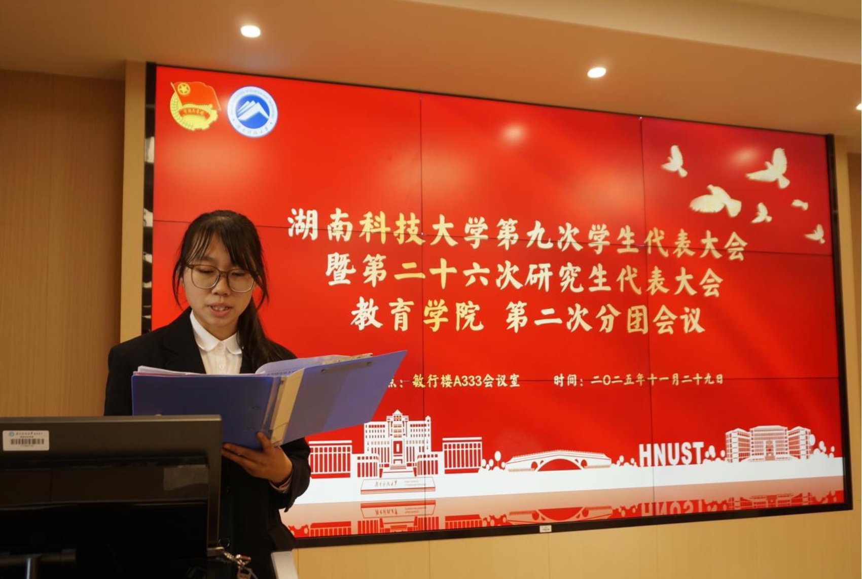 11月29日下午,必赢76net线路官网第九次学生代表大会暨第二十六次研究生代表大会必赢76net线路官网代表团第一次、第二次分团会议在敏行楼A333会议室召开。必赢76net线路官网团委书记张礼林,各年级代表团成员及少数民族学生代表共同出席。本次会议由代表团团长陈慧主持。