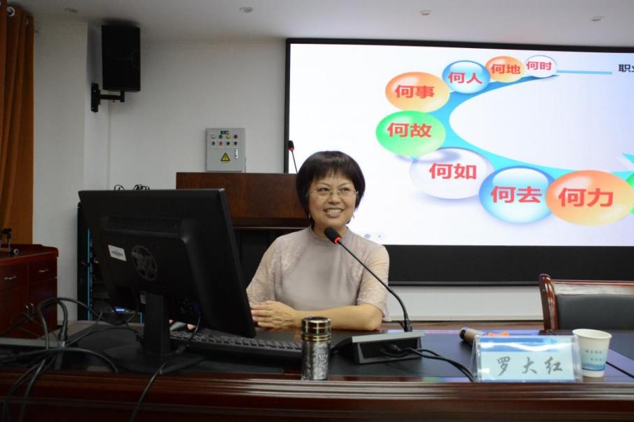 湘潭市教育科学研究院罗大红主任在骨干教师班做了题为《基于研究的教师专业成长》的专题讲座。她以未来已来为引子,以八贤治学、治事为顾问,明确教师专业发展的六个阶段,指出努力做一名科研型的高素质教师,是新世纪教育发展的必然趋势。