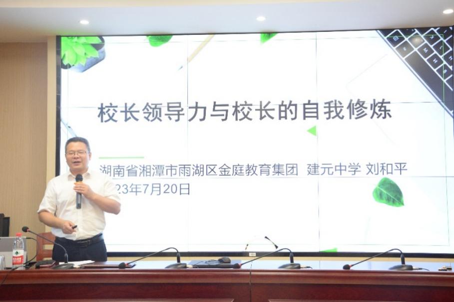 20日上午,建元中学刘和平校长为书记校长班带来了《校长领导力与校长的自我修炼》的专题讲座,让学员们全面了解“双减”背景下中小学校长应该达到什么样的专业标准才能更好地管理学校,了解新时代教育的意义是什么,怎样才能把教育做得更好。