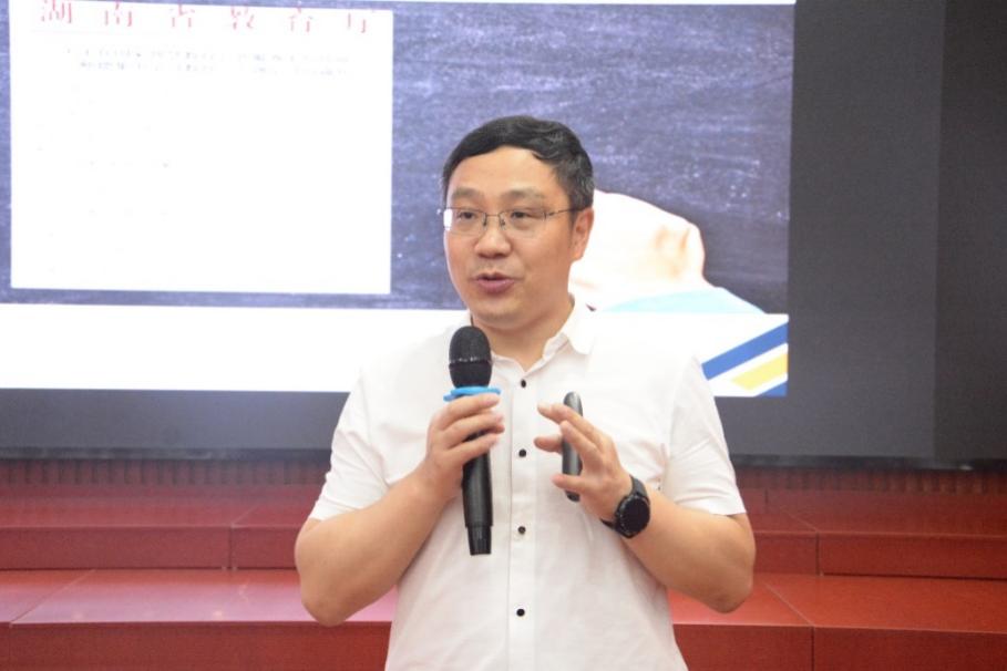 随后,长郡中学课程发展管理中心竞赛培训处王岳飞主任为书记校长班学员带来题为《聚焦贯通培养,助推高质发展——拔尖创新人才培养的长郡探索》的专题讲座,他介绍了长郡中学拔尖人才培养发展的历程、团队建设和课程安排等。