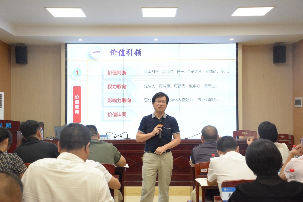 7月18日上午,必赢76net线路官网党委书记李炳煌教授为书记校长班带来题为《书记校长园长引领 促进武冈教育高质量发展》的讲座,他从校长引领认知、校长引领什么、校长引领行动三个维度进行阐述,并指出书记校长引领是区域教育高质量发展的重要引擎,也是一个学校的灵魂。
