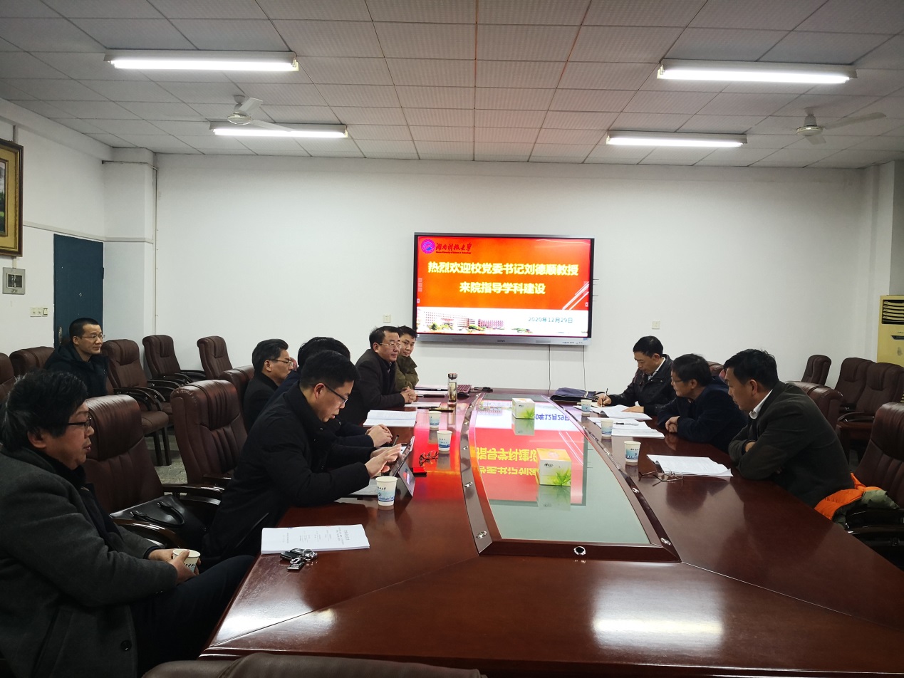 刘德顺首先肯定了学院学科建设工作。他指出,加强学科建设对稳步提升学校综合竞争力具有重要意义,学院一定要高度重视学科建设,扎实做好各项工作:一是要充分挖掘资源,做好统筹规划;二是要凸显特色,形成学科影响力;三是要以“学科评估”为抓手,实现学科发展的新突破。