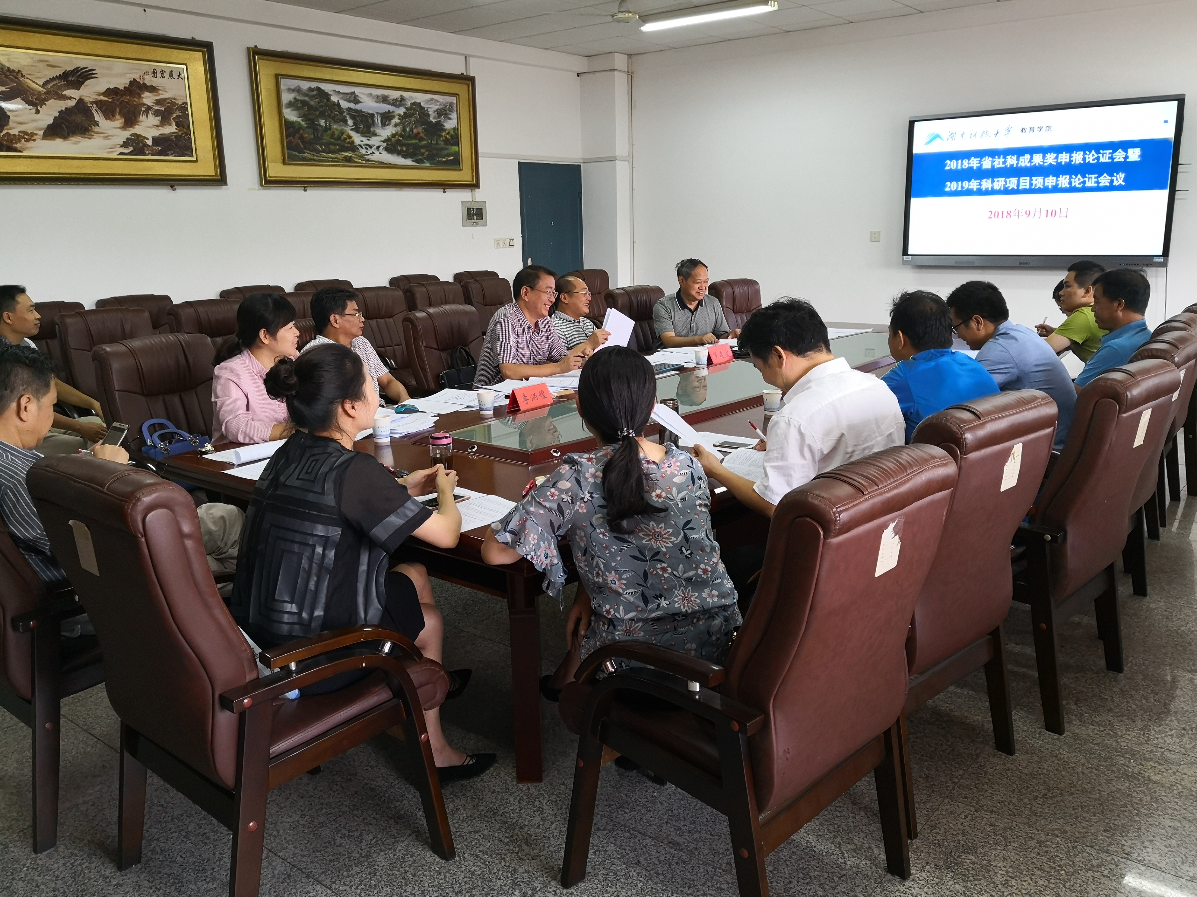 会议分两个阶段进行。第一阶段是2018年省社科成果奖申报论证会。学院拟申报省社科成果奖的老师分别汇报了成果的主要内容、社会反响以及获奖等基本情况,同时提出了在准备材料过程中的疑问和困惑,特邀专家根据历届省社科成果奖申报的相关情况,就老师们提出来的诸多问题交流了意见,并对省社科奖申报材料的准备、注意事项等进行了具体指导。