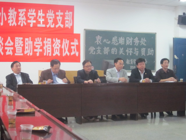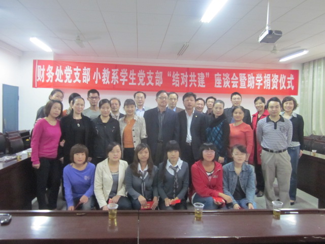 为更好地践行科学发展观,做好争先创优、作风建设工作,财务处发起了针对小学教育专业的“对口资助”活动,资助隋静雅、吴煌、唐配配、范晓壮、何雄娟等7名学生完成学业。