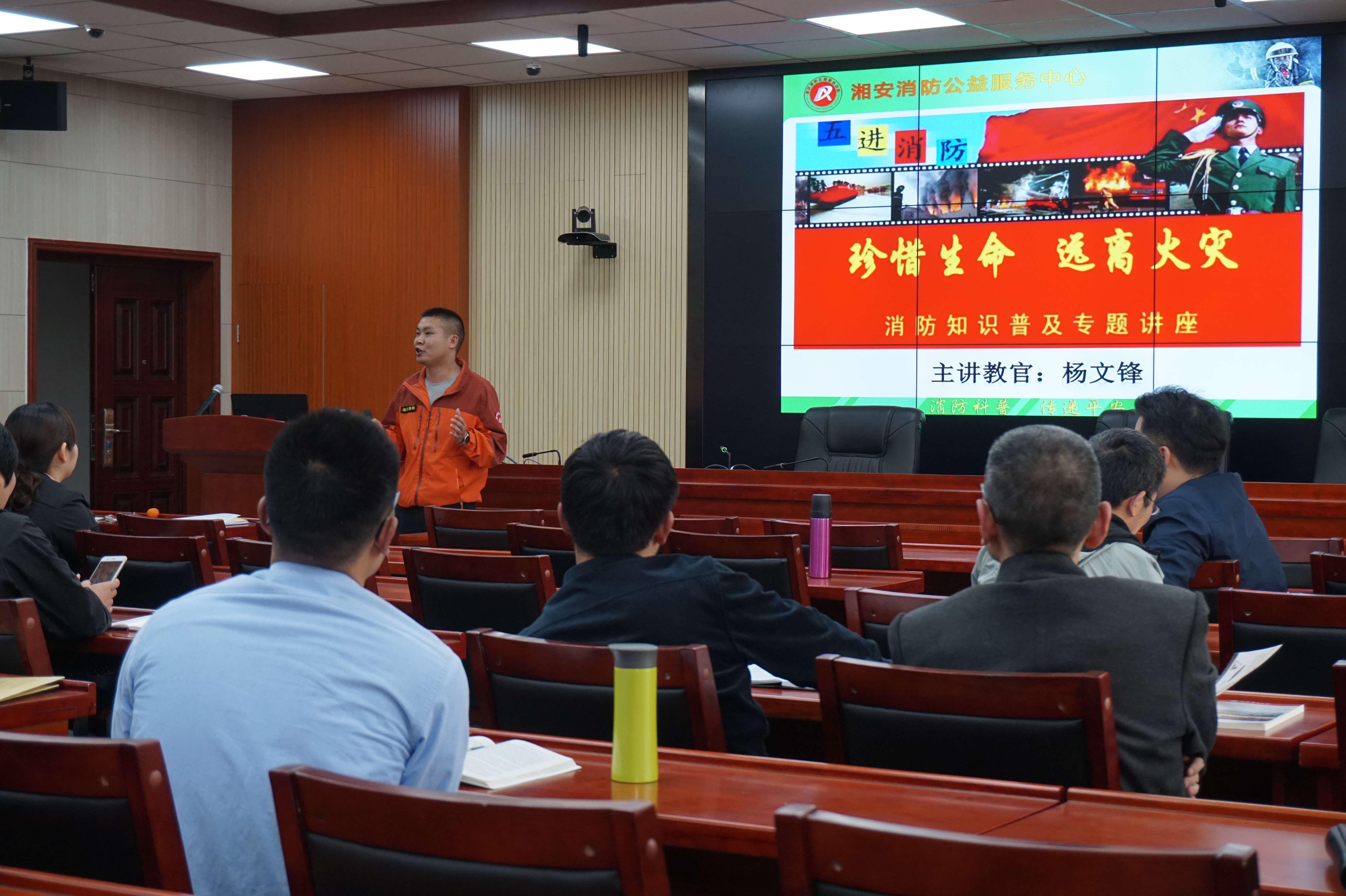 2018年4月17日下午,湘安消防公益服务中心杨文锋教官应必赢76net线路官网邀请,在八教308为必赢官网全体教职工带来了题为《珍惜生命 远离火灾》的消防知识普及专题讲座。