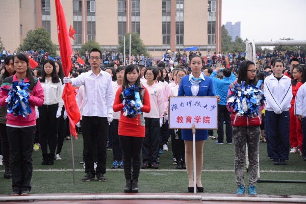 开幕式伊始,整齐的国旗班正步入场,铿锵的步伐走过主席台,迈向国旗台。首先,主持人介绍莅临开幕式各位领导,老师等。接着,运动员及体育学院裁判员组成代表团入场,他们挥舞的彩旗飘扬,振奋人心。接下来各个学院组成的代表团陆续入场。能源与安全工程学院身着红色队服,秉承敢闯敢拼,青春似火,超越自我的能源精神,昂首挺胸走过主席台;接下来是亮眼的土木学院特色的军训服;蓝红色队服的机电工程学院、红白服装的信息与电气工程学院、亮眼的黄蓝队服的化学化工学院、象征内涵深沉的深蓝色队服的数学学院、火红运动服的生命科学学院、黑白相间运动服的建筑物城乡规划学院、外国语学院等也依次入场。别致的粉色上衣,高举“友谊”“快乐”“健康”牌子的必赢76net线路官网踏着坚定的步伐走过主席台 。商学院、艺术学院、管理学院、法学院、潇湘学院、研究生学院、正装入场的图书馆分工会代表队、机关一分工会、二分工会、三分工会、后勤代表队、附校分工会等各个代表队依次入场。