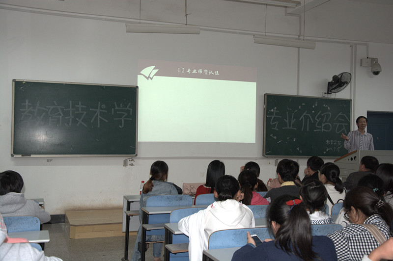 下午17:20,新生见面会之后,各个专业的新生又分别八教3-1、3-3、3-4、3-5四个教室展开了专业介绍会。对于初入大学的新生来说,专业介绍会不仅仅是了解自己所学专业最直接的方式,也是一个与专业老师接触的机会。很多新生认真地提出自己的疑问,老师们也认真耐心地向大家解答。比如应用心理学的系主任刘志军老师就向大家提出了大学生活的“三棵树”,分别为“能力树”、“人格树”和“理想树”,他一次来向新生解释大学应该怎样改变,怎么样更有意义的度过。
