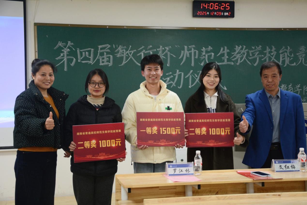 文红梅宣读湖南省第十一届师范生教学技能竞赛获奖名单、第十一届必赢76net线路官网师范生教学技能竞赛“十佳选手”名单。张进良、文红梅共同为获奖选手颁发证书及奖金。