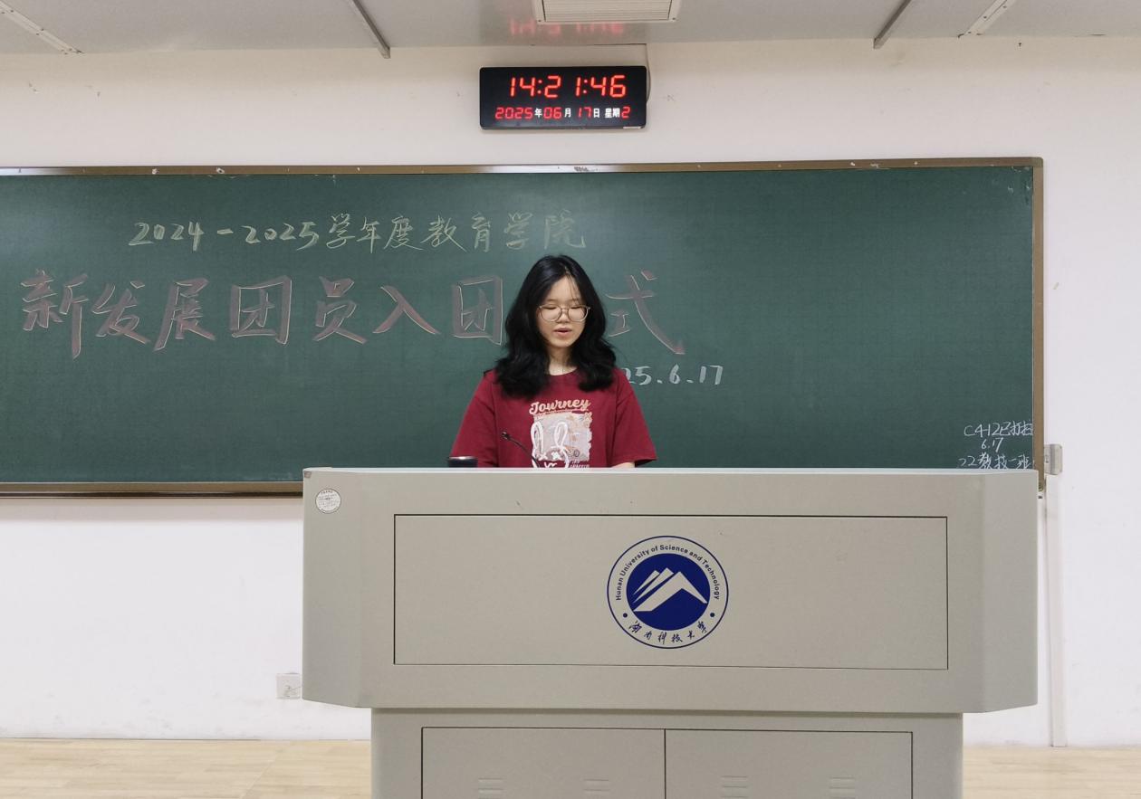 6月17日,必赢76net线路官网在敏行楼C412举办2024-2025学年新发展团员入团仪式。必赢76net线路官网团委书记欧树宏,学院共青团员参加本次仪式。仪式由张荣颖主持。