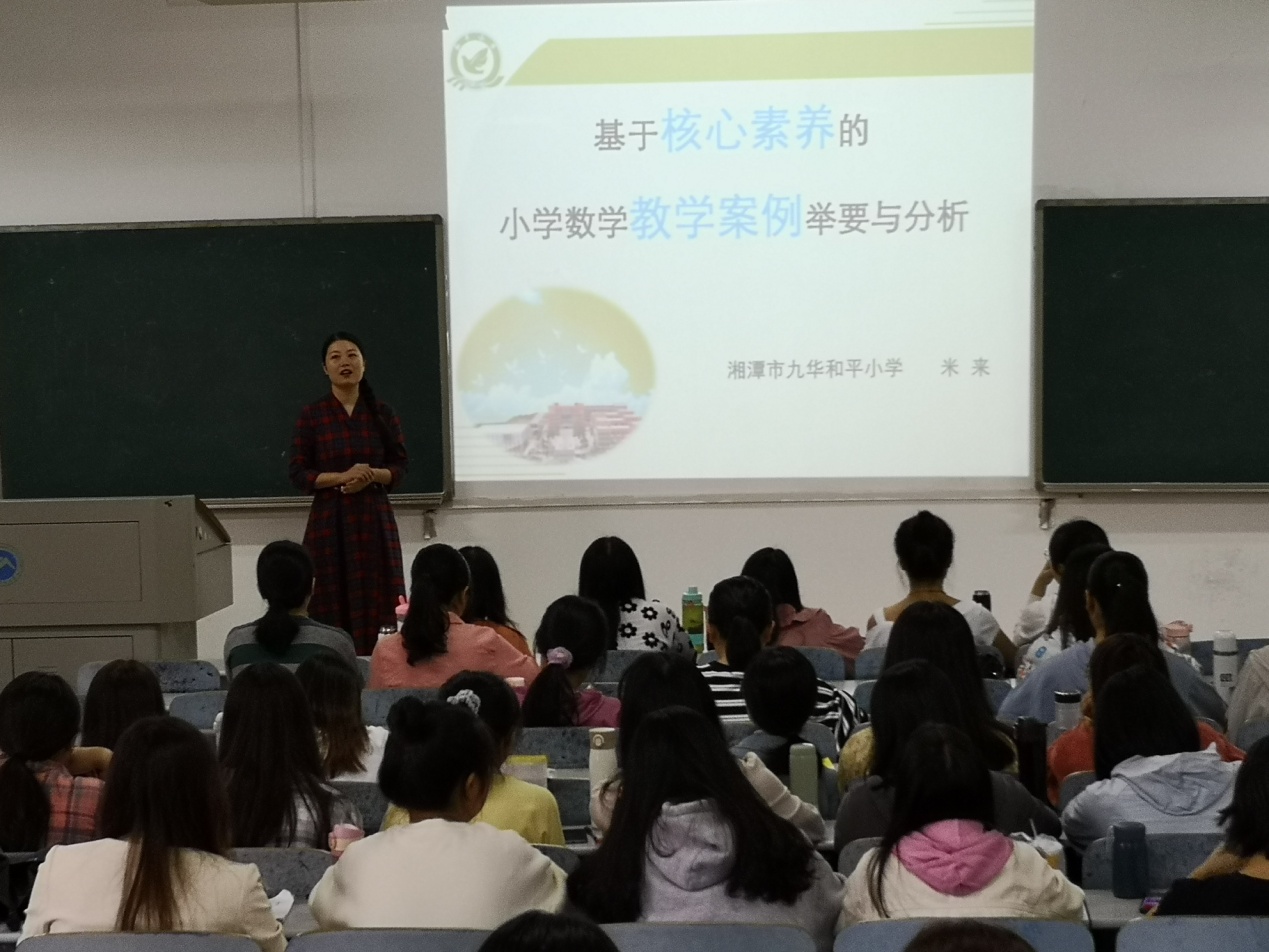 米来老师为学生带来了精彩的专题教学:《基于核心素养的小学数学教学案例举要与分析》,通过多个案例的讲解,同学们对如何提高小学数学教学内涵有了更直观、具体的感受。