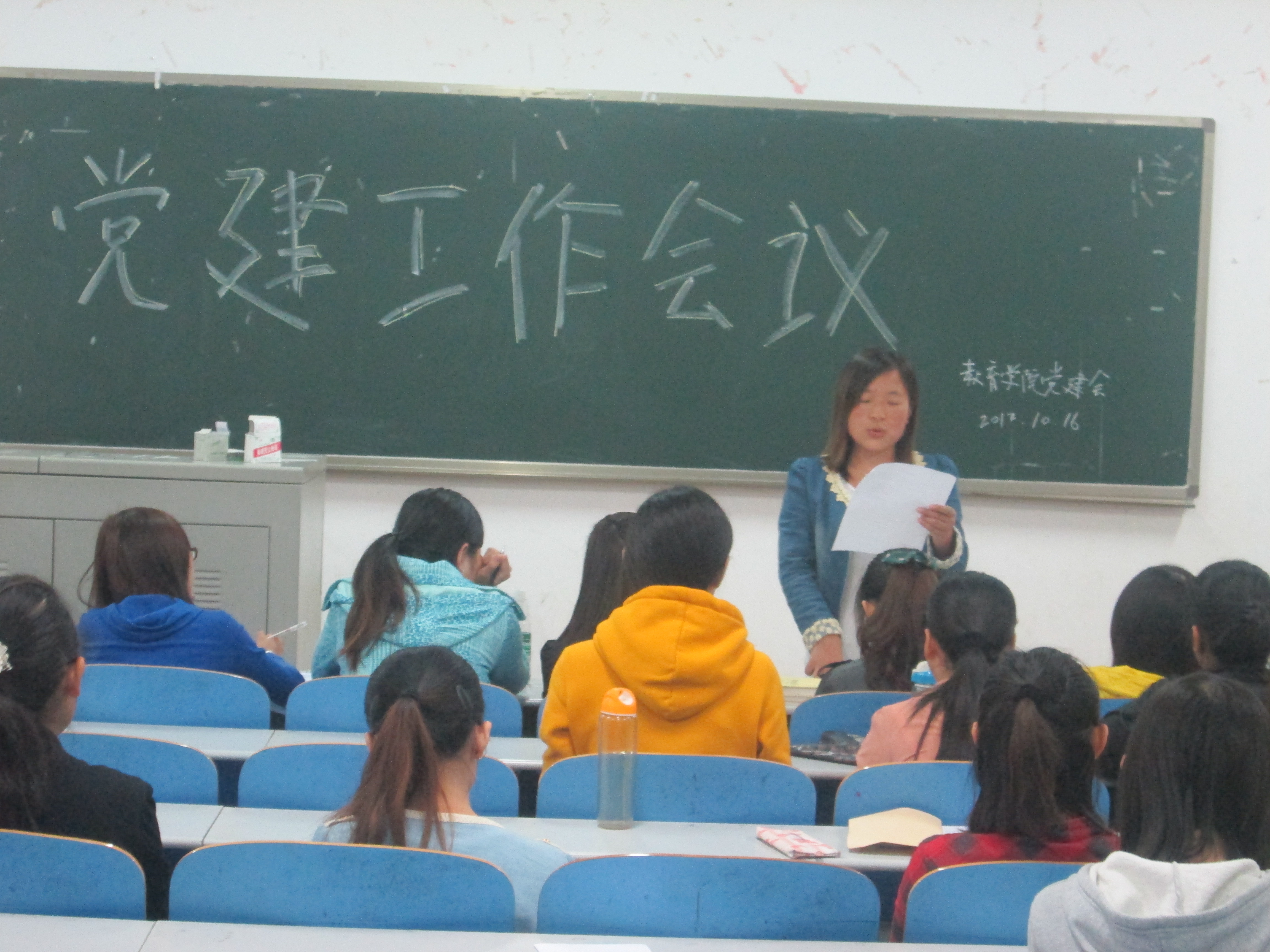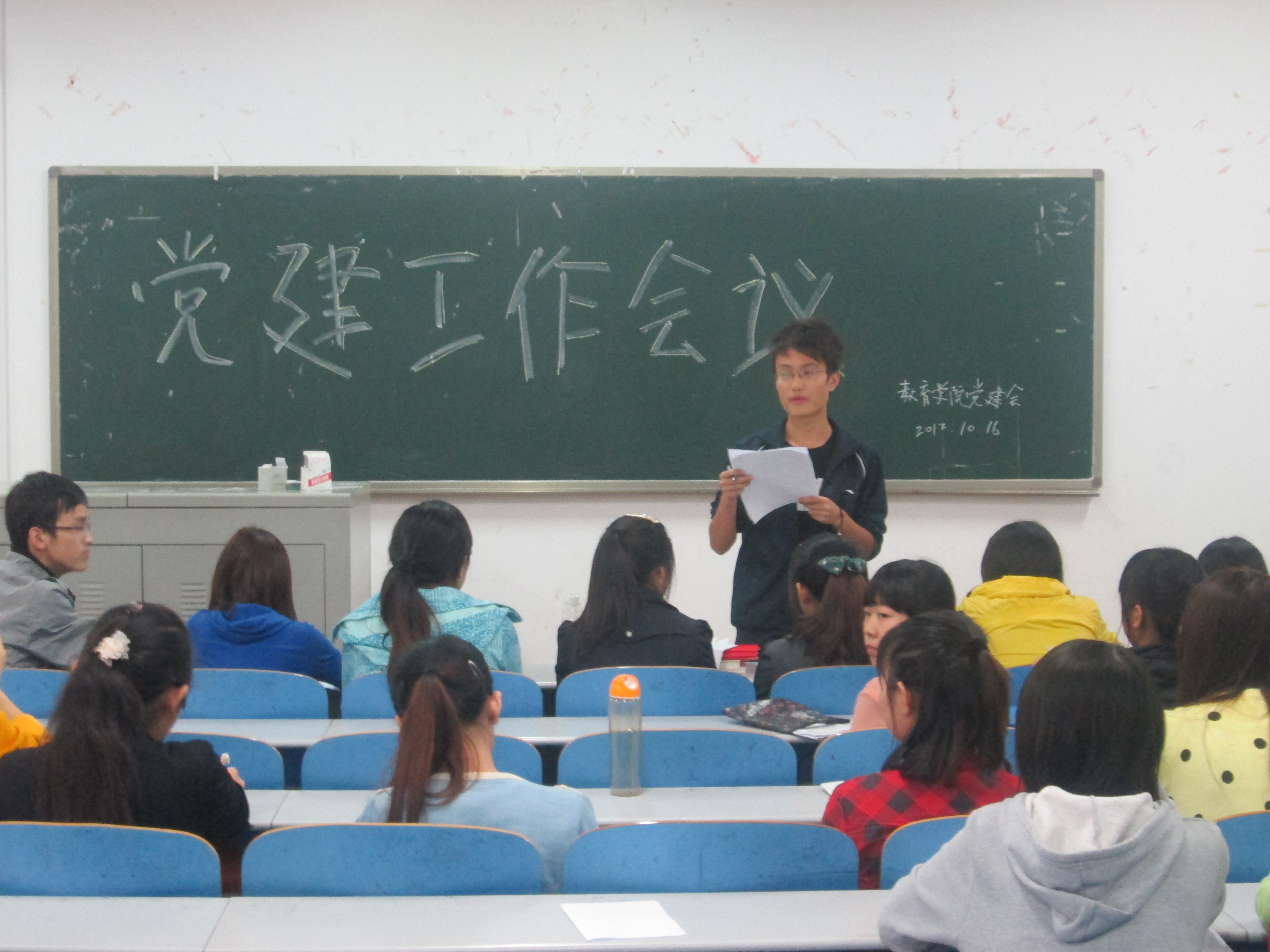 组织部部长何雄娟同志重点指明了入党推优的程序及推优条件,希望各班团支书紧记各项条件,推出符合条件的优秀同志加入党的大家庭。她还说明了蹲点党员的各项工作职责,希望各位蹲点党员明确自己的工作任务,加强与所带班级同学的沟通,确保推优入党的各项程序公平公正化。接着,党建会的各个部长都对本部门的工作情况作了简要介绍,同时指出了在工作中所出现的各项问题,希望在今后的工作中能够完善不足,争取做到更好!