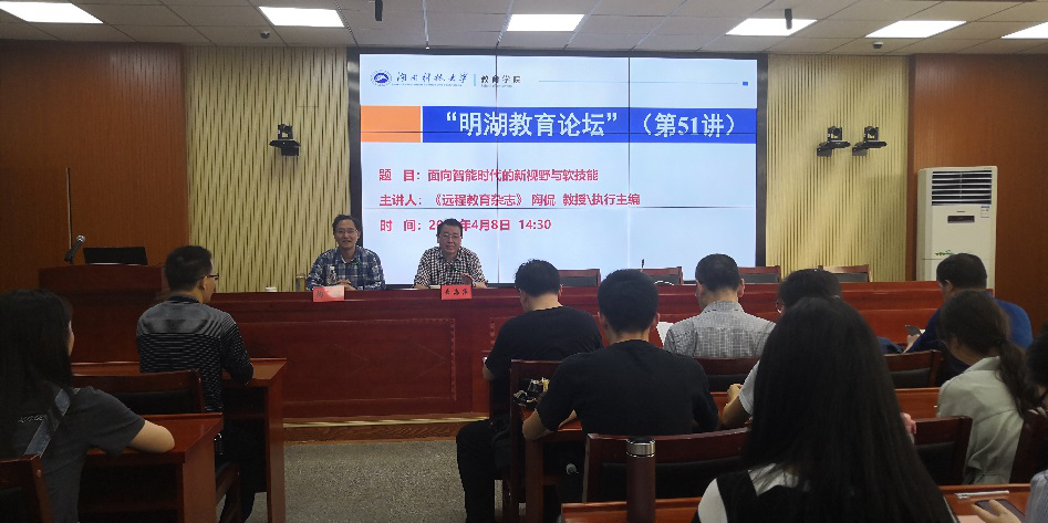 2019年4月8日下午,《远程教育杂志》执行主编陶侃编审做客“明湖教育论坛”,为必赢官网师生带来主题为“面向智能时代的新视野与软技能”的学术报告。报告会由必赢76net线路官网院长李海萍和教育技术学专业带头人王伟清主持。