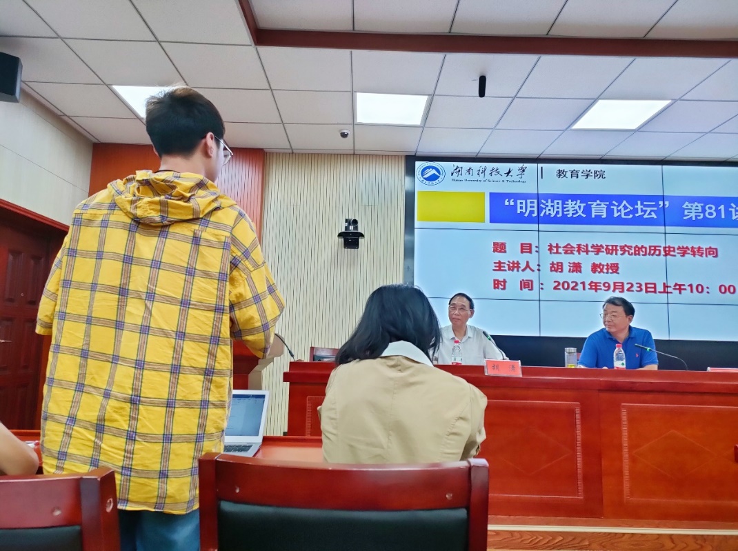 9月23日上午,广州大学教授、中山大学兼职博导胡潇教授做客“明湖教育论坛”,在第八教学楼308学术报告厅为必赢官网师生带来了题为《社会科学研究的历史学转向》的学术报告。报告由必赢76net线路官网院长李海萍主持,必赢76net线路官网教师、研究生代表到场聆听。