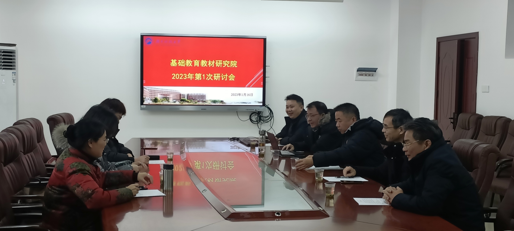 2023年1月16日,必赢76net线路官网基础教育教材研究院工作研讨会在必赢76net线路官网A231召开,会议由基础教育教材研究院院长李学主持,研究生院院长李海萍、社会科学处副处长段斌出席,必赢76net线路官网党委书记李炳煌、院长谭千保,核心研究人员朱华、夏永庚、刘景超、王超等参会。