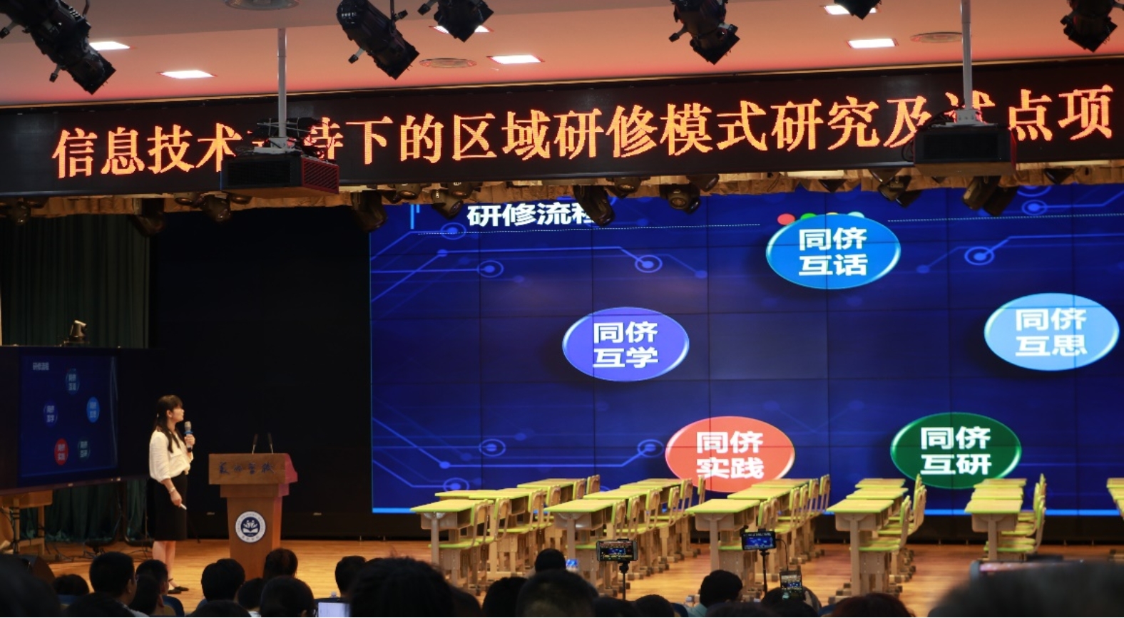 会议分为上午和下午两个部分,上午会议以主题报告为主,华南师范大学研究员武丽志做了“互联网时代的教师专业发展——新理念、新模式、新技术、新资源、新体系”的主题报告。江苏省南京市秦淮区教师发展中心副校长丁玉祥做了“技术支持下的区域教师网络研修模式创新与研训方式转型”的主题报告。接着,湖南省株洲市荷塘区教育局党委书记韩永斌进行了题为“融合创新、智能引领、构建荷塘教师发展新常态”的主题发言。