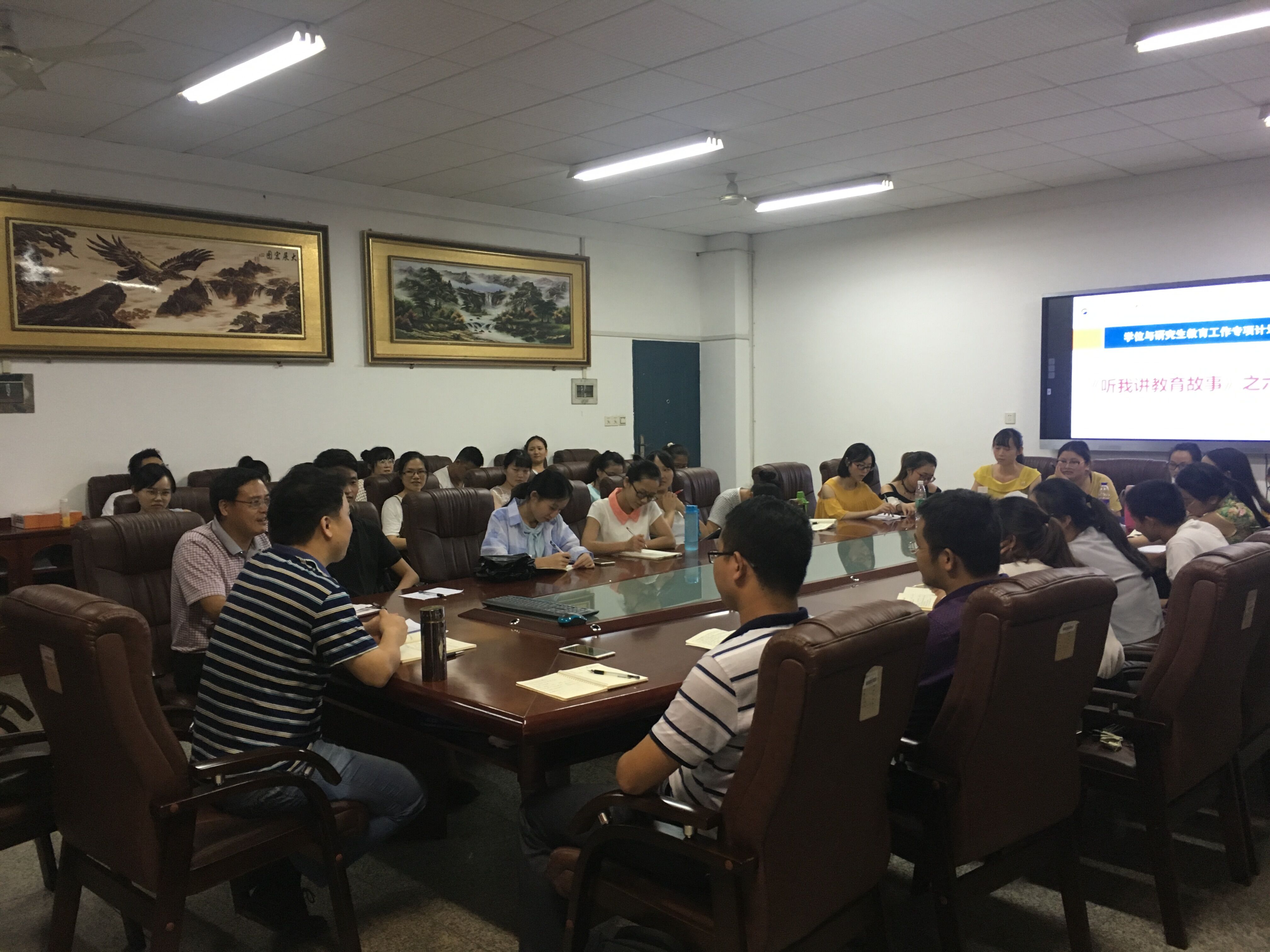 前两场交流会取得较好效果,在同学们的殷切期盼中,7月28日晚,迎来了第三场交流会,本次活动在八教203举行。非全日制4名教育硕士向在场师生分享了自己的教育故事。2017级硕师计划、学科教学(思政)、学科教学(数学)等专业领域的教育硕士参加交流会。交流会由必赢76net线路官网副院长谭千保主持。
